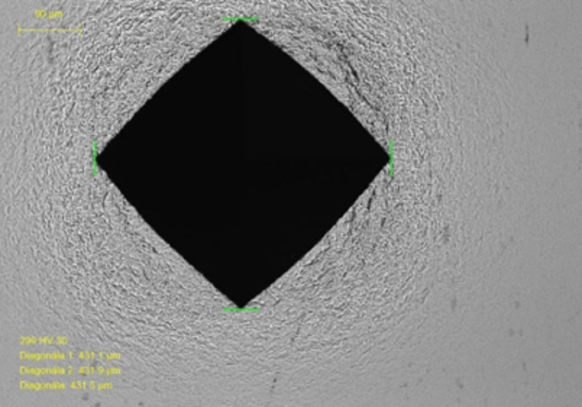 V rámci laboratoří měření tvrdosti provádíme hodnocení dle metod Brinell, Vickers a Rockwell. Disponujeme jak čistě mechanickými přístroji s manuálním odečtem velikostí vtisků, tak poloautomatickými přístroji s automatickým odečtem a digitálním výstupem. Kromě běžných zatížení jsou poloautomatické přístroje schopny měřit i mikrotvrdost dle příslušných norem až do minimálního zatížení 1 gram.