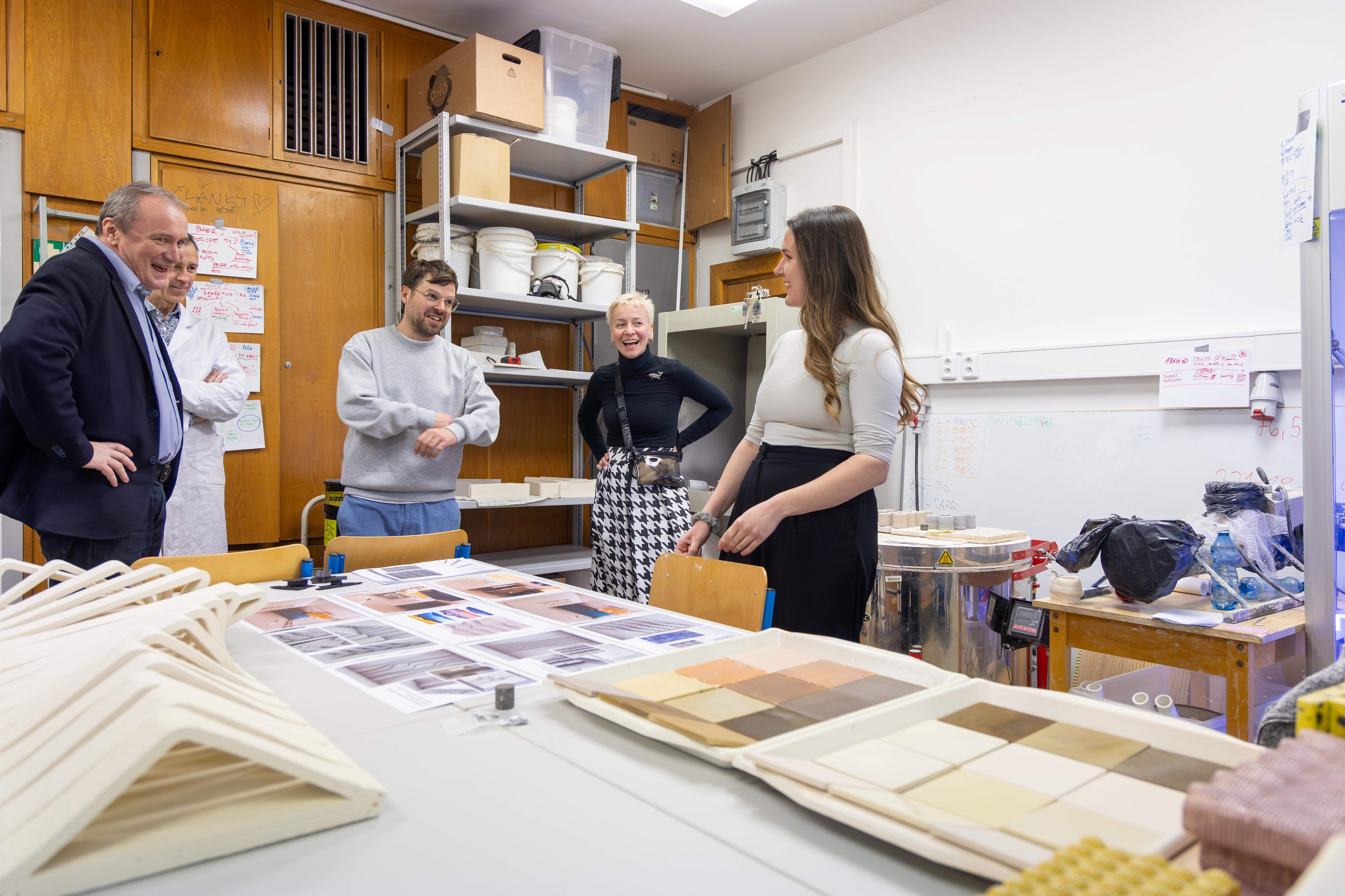 The afternoon program featured tours of selected laboratories and research facilities. Discussions quickly turned to concrete collaboration opportunities—from 3D printing to materials research. Particular attention was given to ceramic 3D printing, as well as a bachelor’s thesis project by student Ivana Vlčková, which sparked a lively debate on how to further integrate artistic approaches with technological innovation.